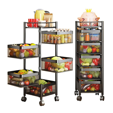 Cozinha armazenamento prateleira rotativa 3/4/5 camadas Multilayer 360 Graus De Aço Carbono Vegetal Frutas Armazenamento Cesta Rack Carrinho